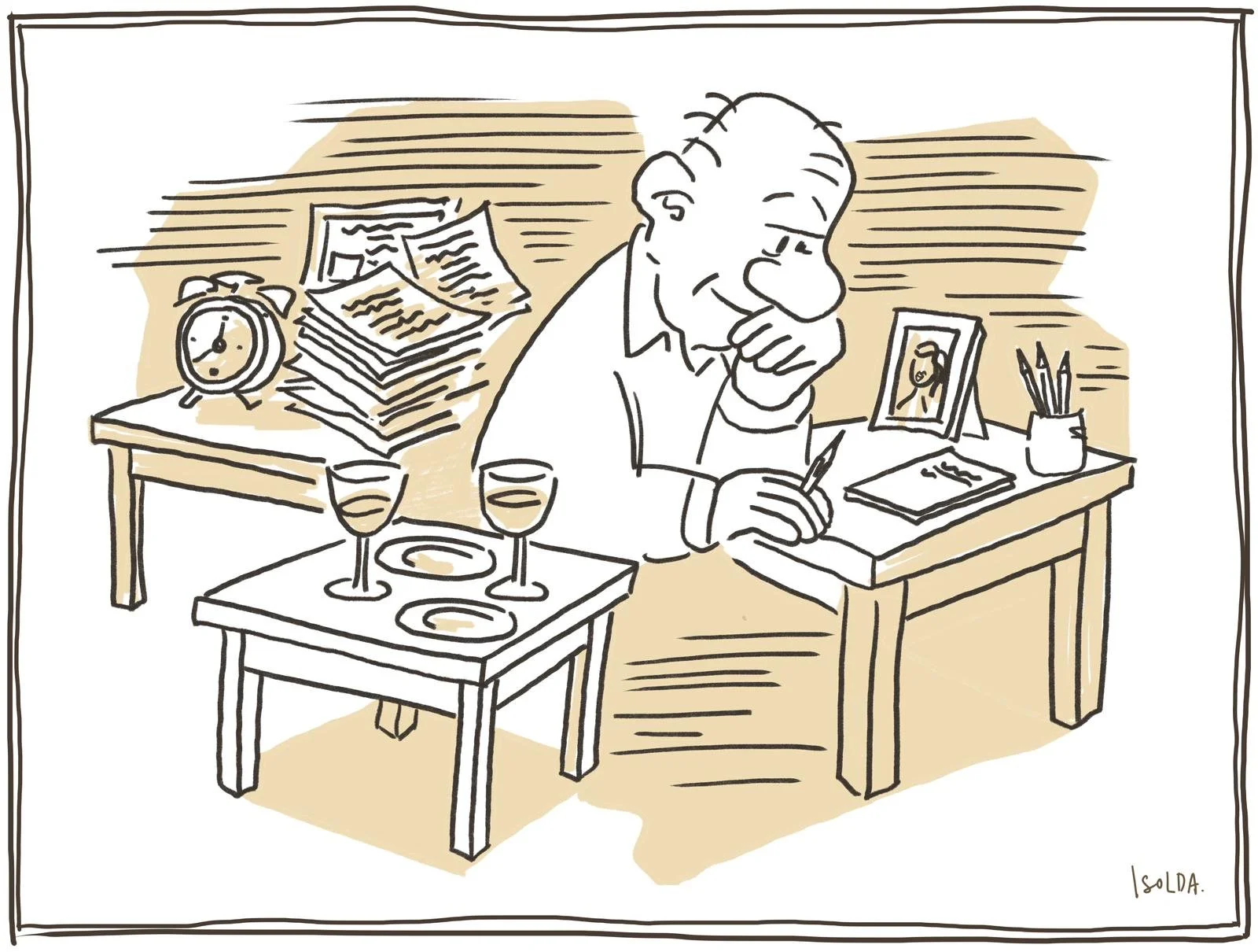 Por mi parte, aquí sigo, estorbando. La jubilación fue un punto de inflexión en mi vida, tú lo sabes bien. Realmente, una jubilación sólo afecta a la vida laboral de una persona, que sigue siendo el mismo individuo que el día antes de jubilarse. La gente dice que “el ser humano tiene fecha de caducidad” cuando se refiere a la muerte, pero creo que la fecha de caducidad sería más bien el día de la jubilación, que es el momento que me ha dejado inútil y podrido, pero aún con la apariencia de que sigo siendo el mismo que antes. Solo soy un anciano sin ideas condenado a hablar de sus logros pasados. Reflexionando sobre esto, he recordado una conversación que tuvimos el día que me jubilaba sobre lo útil y lo inútil, nunca se me olvidará. La apunté en este cuaderno esa misma noche. Fue a raíz de tu Opel Corsa, si no recuerdo mal, coche de treinta y cinco años que sigo cuidando como la reliquia que es. Bromeábamos sobre él, y tú me decías que era viejo, pero seguía funcionando. Llegamos a la conclusión de que la vejez no tiene que ver con la utilidad. Y es verdad, porque yo soy viejo e inútil, pero no soy inútil por viejo, y porque tú, incluso muerta, sigues siendo valiosa. Ese mismo día también me dijiste que, por mi obsesión por tirar lo obsoleto, quizás recibiría la muerte con regocijo cuando me sintiese lo suficientemente estropeado. Yo, con ciertas dudas, te dije que no. Ahora que mi deterioro es imparable, te lo puedo afirmar con certeza: no me quiero ir de aquí.