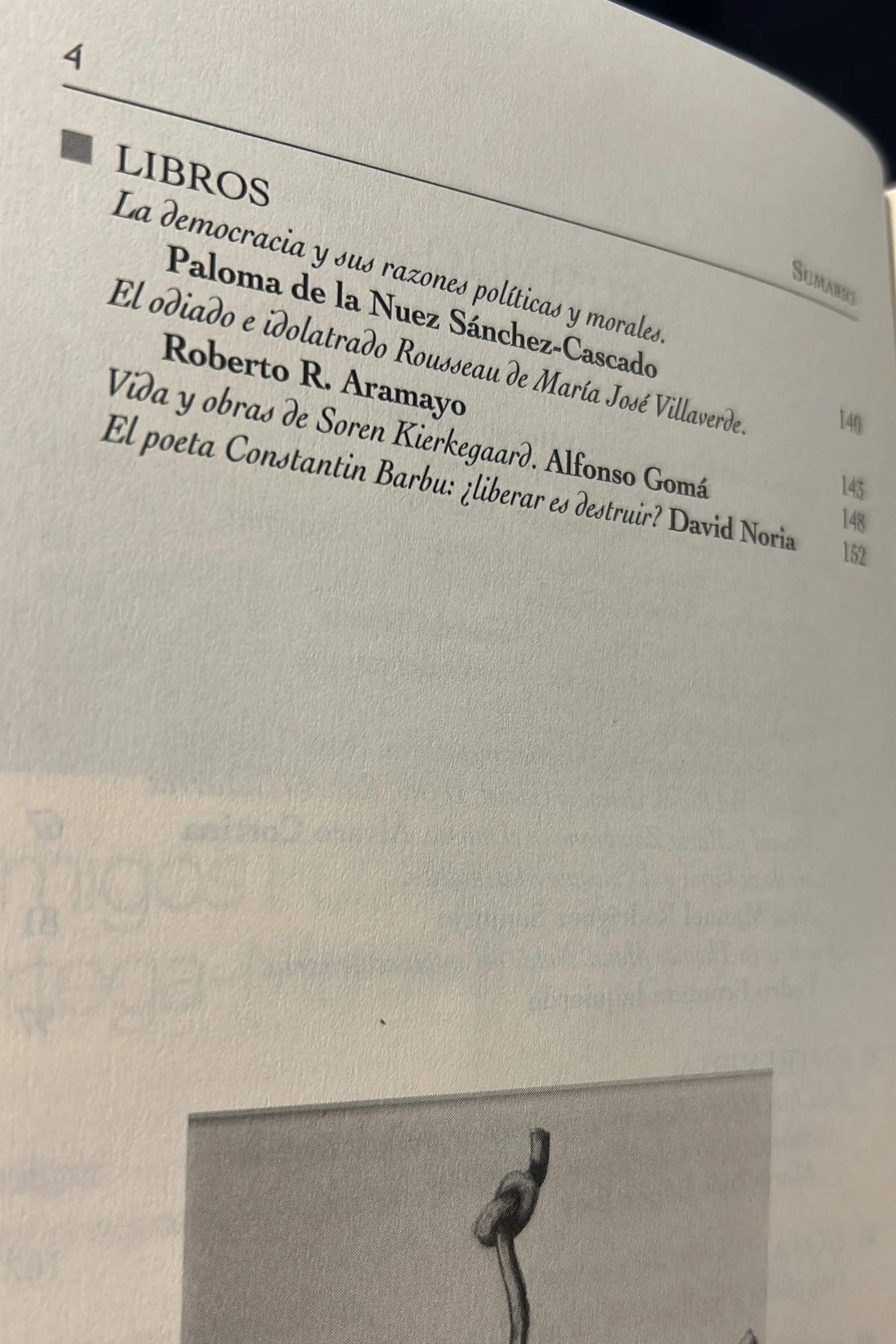 Y, un segundo después, me di cuenta: era la primera vez que me encontraba con un texto mío en esos depósitos del saber que son las librerías. Sentí algo totalmente novedoso: que yo formaba parte de todo aquel entramado. Aunque había publicado en noviembre del año pasado otro artículo en la Revista de Occidente, no me lo llegué a cruzar nunca.