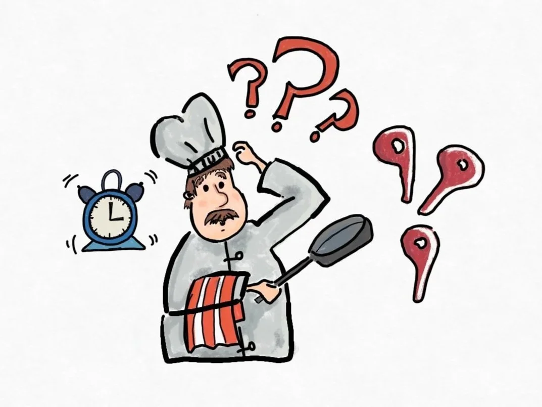 Un chef se enfrenta a un reto en su cocina: tiene tres jugosos filetes para preparar y solo dispone de dos sartenes.